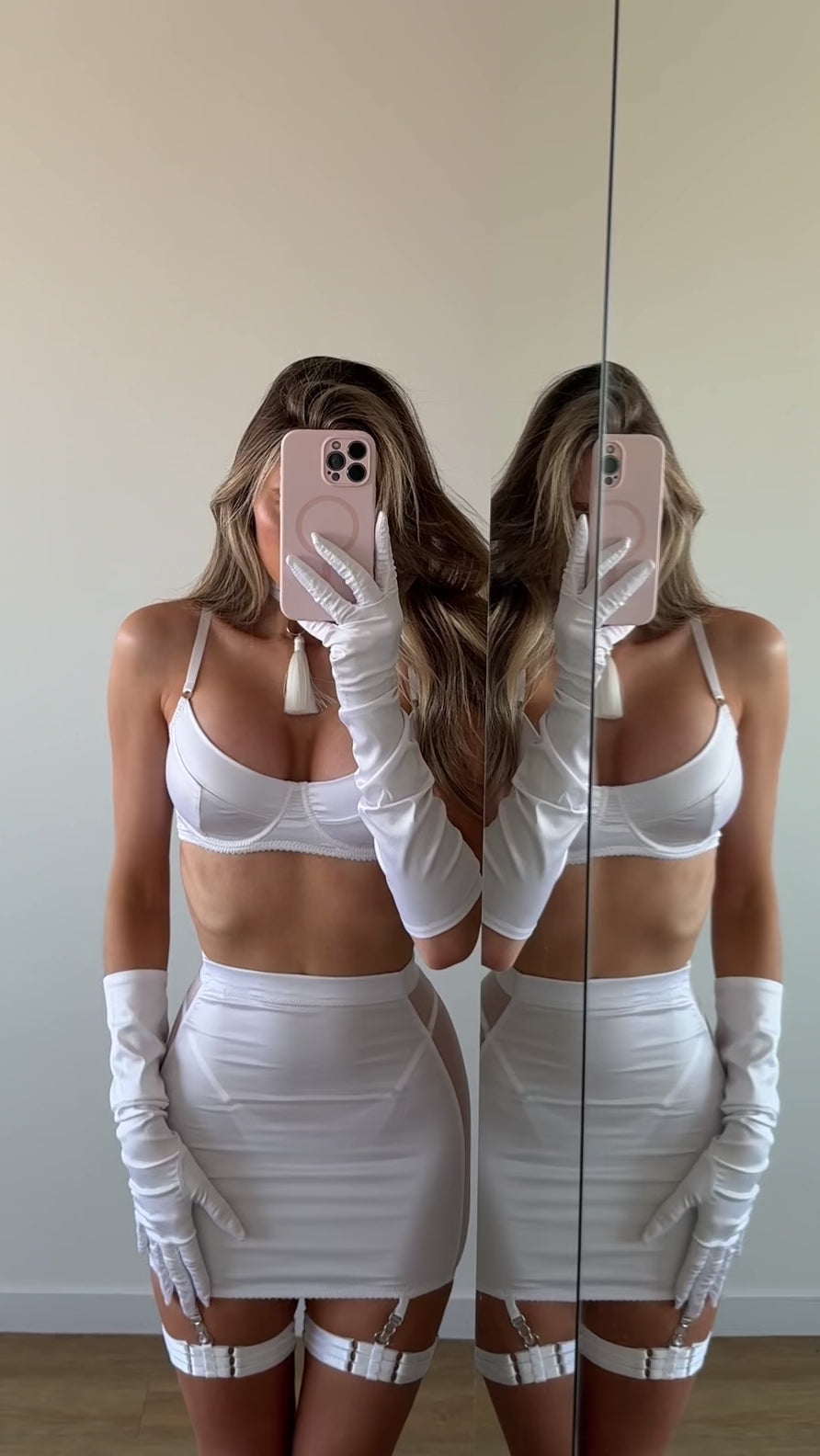 'ROMA' бiлий комплект білизни зі спідницею та рукавичками